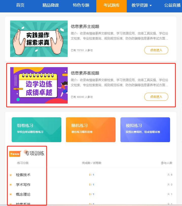 本次比赛利用“高校信息素养教育数据库”进行备赛、比赛,具体使用方法如下。