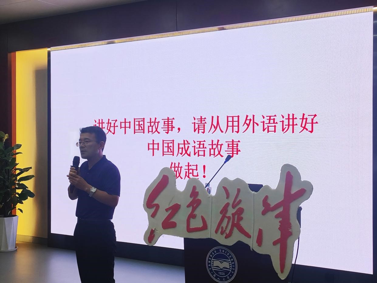 侯羽老师为大家分析了《习近平谈治国理政》的成语英译案例。侯老师回顾了习近平总书记与河北省的渊源,1982年总书记在正定县任县委书记期间,建设了红楼梦的拍摄地荣国府并大力发展旅游业,2017年总书记考察并规划建设了雄安新区。侯老师还向大家介绍了《习近平谈治国理政》中“两败俱伤”、“水乳交融”、“生死与共”、“筚路蓝缕”的四个成语的英译方法,讲授了汉语成语的三种翻译方法:解释性翻译、省略、用英语成语翻译汉语成语。侯老师强调,讲好中国故事,要从用外语讲好中国成语故事做起。