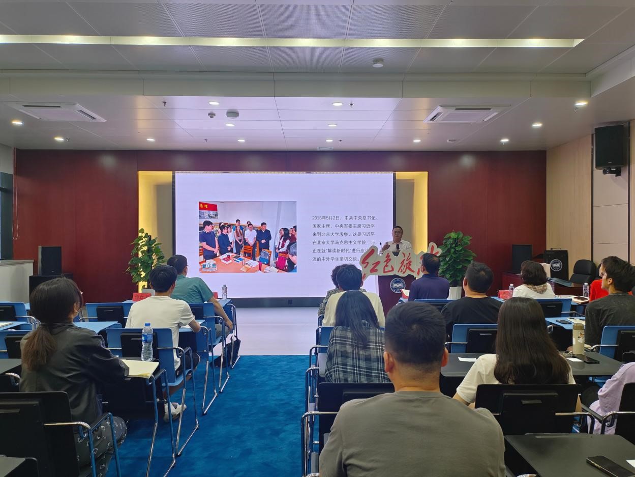 2023年6月21日晚7:00,由马克思主义学院、图书馆和外国语学院联合举办的第七十五期“红色旋律”读书会在图书馆四层报告厅举办。本期读书会的主题是庆祝七一“读《习近平与大学生朋友们》”,马克思主义学院杨红星老师和外语学院侯羽老师担任主讲。马克思主义学院党委书记王新华、图书馆党委书记屈晓阳出席活动,读书会由马克思主义学院李晔老师主持。