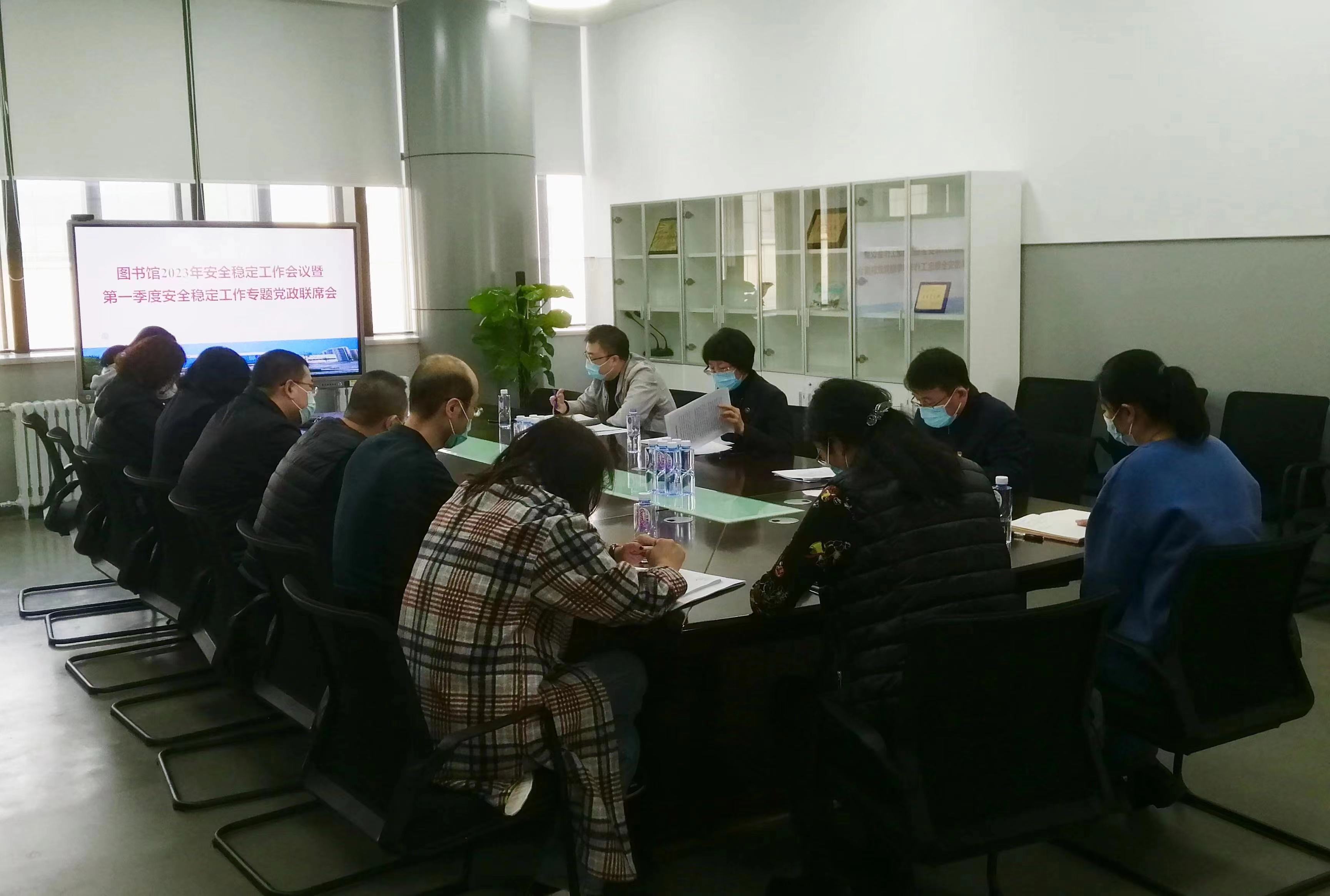 3月6日上午,图书馆2023年安全稳定工作会议暨第一季度安全稳定工作专题党政联席会在图书馆党员活动室召开。馆领导班子成员、科级秘书、业务管理骨干、党支部书记参加会议。会议由图书馆党委书记屈晓阳主持。