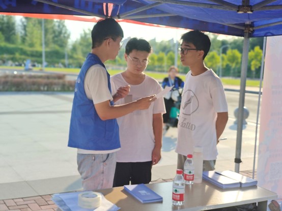 8月30日、31日两天,图书馆在室外安排值班人员向家长和新生介绍图书馆的基本情况,赠送图书馆概览折页和饮用水,并积极解答家长和新生的疑惑,引导其入馆参观。