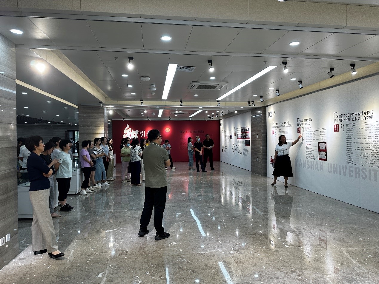 9月7日下午4点,全体馆员在图书馆一楼展厅参观“知”引未来 智“惠”服务——燕山大学知识产权信息服务成果展。展出了国家知识产权信息服务中心自开展工作以来所取得的阶段性成果。许子媛和单伟从不同角度阐释了图书馆在知识产权领域的对内和对外服务,让我们了解了知识产权目前在业界及科技创新领域的重要价值,图书馆所发挥的巨大作用。