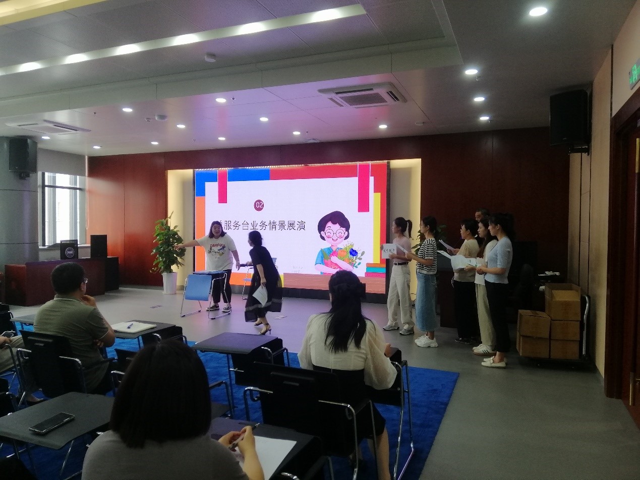 接下来的情景展演式培训活动,来自读者服务党支部馆员代表、资源建设与信息技术党支部馆员代表、行政服务党支部馆员代表分别展演了在维护馆内正常工作秩序、图书借还、服务台咨询、图书捐赠、办公文件整理、高效开展阅读推广活动、新馆家具配色、新馆导视等多个工作场景。诙谐幽默的表演让大家在开心之余又学到了不少的新方法。场景切换中的互动又让大家了解到更多馆员服务工作的理念和实践过程。图书馆副馆长王一淳对情景展演节目进行了点评,王一淳对馆员的热情参与、节目的精心编排高度赞赏,指出在后续的工作中馆员同志们要再接再厉,更好的服务读者,体现图书馆人的专业和以读者为中心的服务理念。