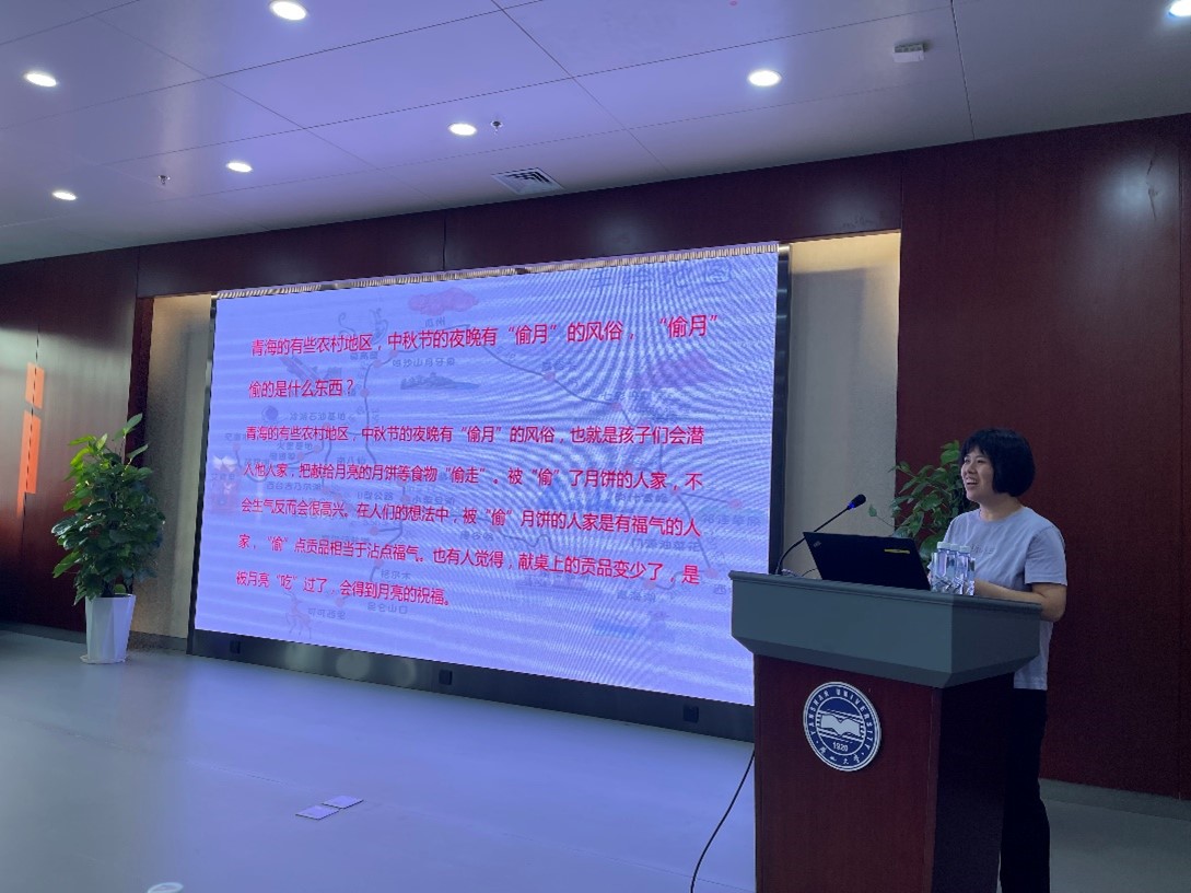 活动主要包括两部分内容。在寻中秋之源部分,邀请图书馆部分职工分享了东北、华东、西南、西北的地理风貌和人文景观,同大家一起共话多彩神州,感受文化中国。其中,在每个人的分享中还准备了一道有关当地中秋文化传统的题目,现场的职工积极参与答题,大家一起探寻独具地方特色的中秋文化习俗。