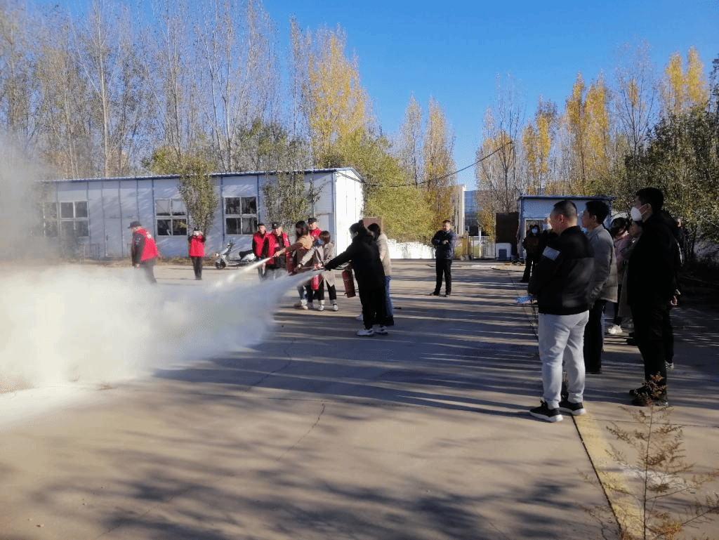 应急疏散演练结束后,全体人员赶赴指定位置进行灭火器使用实战演练。在安全工作处负责同志详细讲解了灭火器的使用规范和注意事项后,现场人员认真聆听后,根据指导分批次完成了二氧化碳灭火器灭火的演练过程。