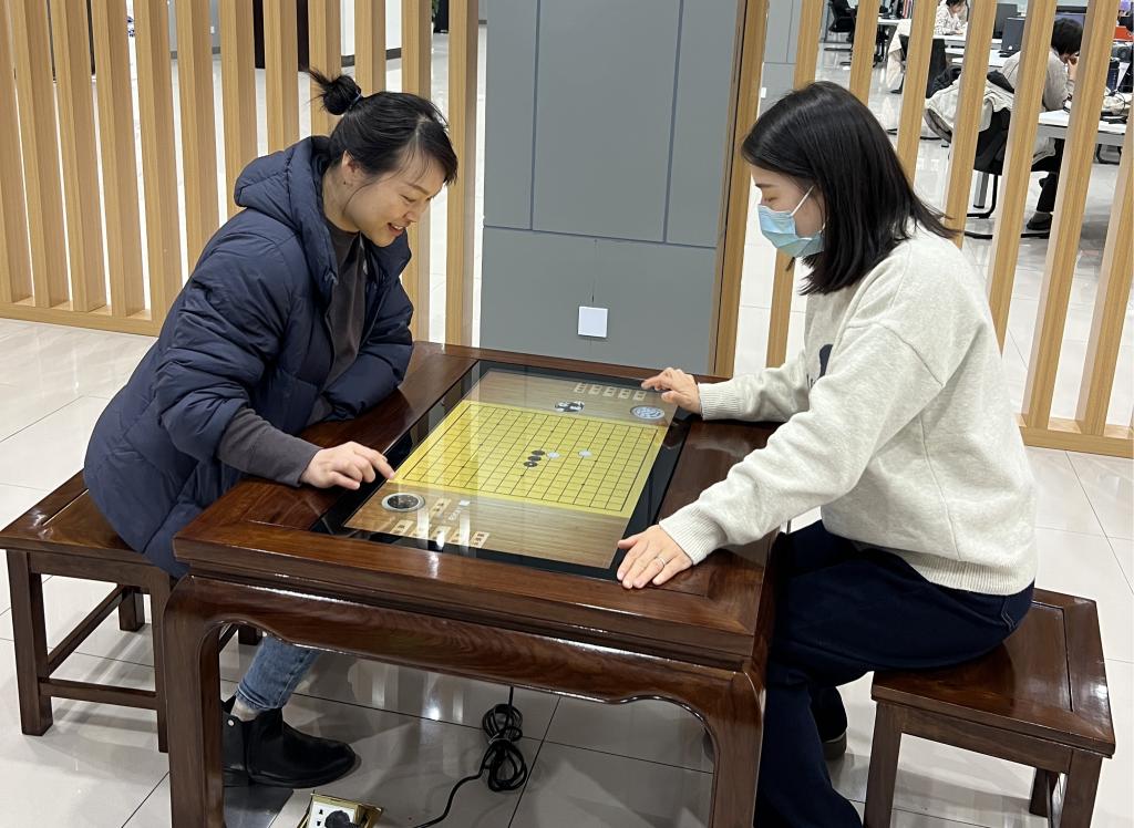 纵横经纬,智慧交锋。为弘扬中华优秀传统文化,增进职工间的交流、互动,提高大家对馆内智慧设备的感知与体验,11月28日图书馆工会在图书馆一层电子阅览室•库客音乐区举办幸福校园文体汇之“智慧运动,乐享‘棋’趣”活动。