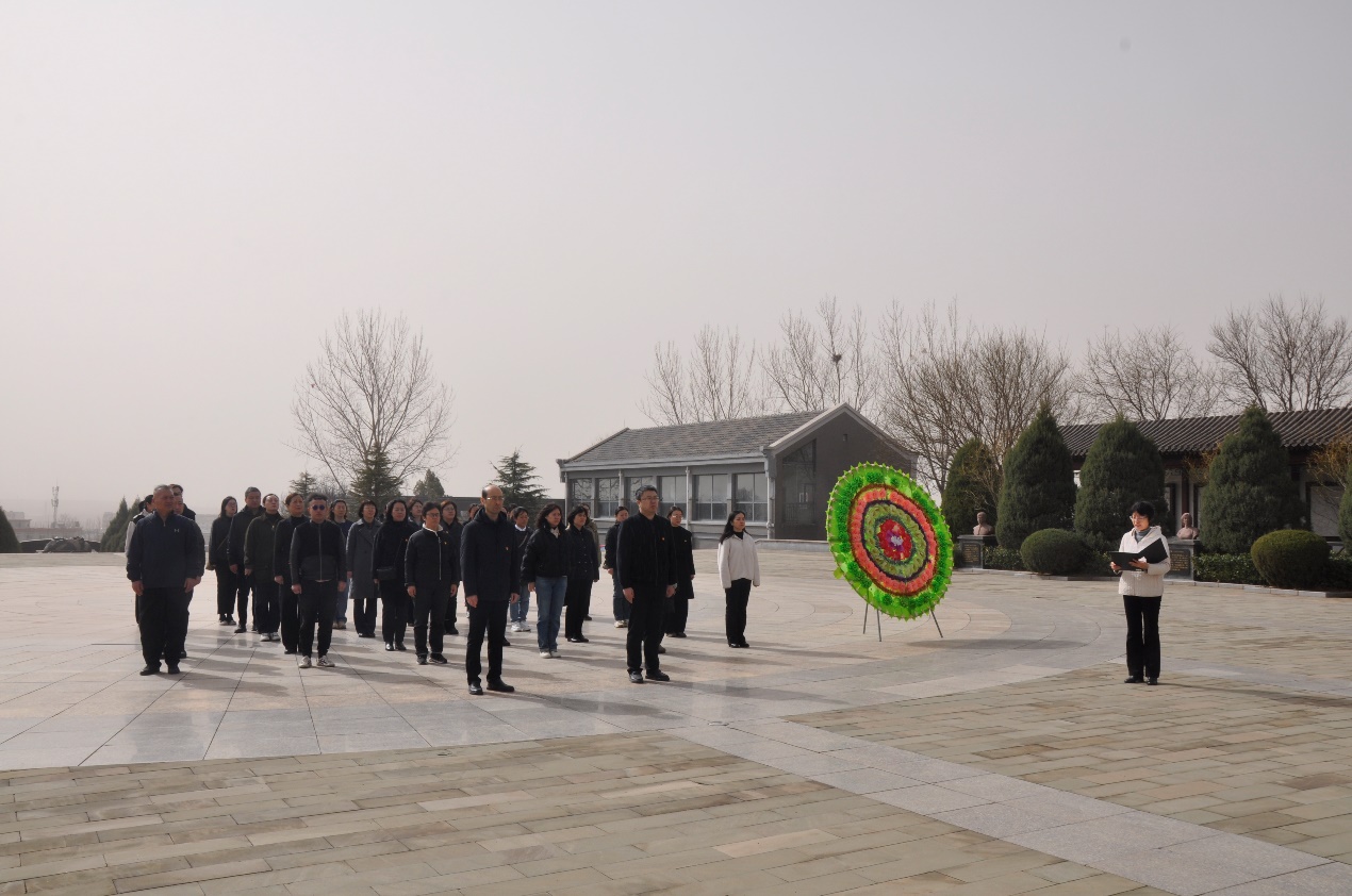 在巍然耸立的烈士纪念碑前,全馆职工怀着崇敬的心情肃然列队,向革命先烈鞠躬、默哀,表达对革命先烈的追思、敬仰之情。默哀毕,馆领导代表全馆职工稳稳抬起敬献给革命烈士的花圈,缓步走向烈士纪念碑,将花圈摆放在纪念碑基座上,寄托着对革命先烈的深切缅怀和崇高敬意。在讲解员的引导下,全馆职工瞻仰了烈士纪念碑,大家不时驻足凝视,以寄哀思。