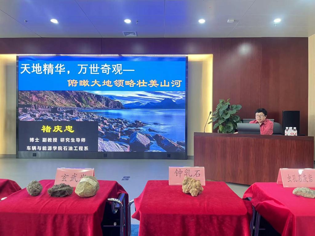 此次活动,图书馆邀请了车辆与能源学院石油工程系地质学博士、研究生导师褚庆忠副教授为同学们讲解地质知识。在讲座中,褚老师以美学的内涵开篇,引领同学们思考美与审美的关系,从中国古代传统文化入手,结合诸子百家,全方面阐释古人对美的理解;通过天色、山色、水色等诸多自然景色,展示了自然美景对于审美的熏陶作用;从鬼斧神工的奇特地貌到价值连城的稀有矿产,从秦皇岛的地质划分到燕山大学塔山的木石花草,褚老师通过一张张惊艳的图片带领全场同学走进了瑰丽奇特的地理世界。