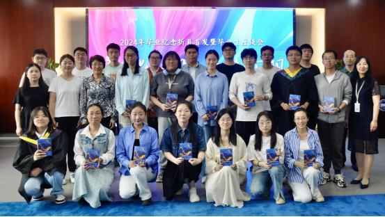 优秀读者代表手持毕业纪念折页合影