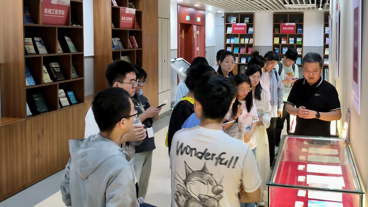 座谈会结束后,毕业生们在图书馆员的讲解下参观了燕大文库。燕大文库致力于收藏师生校友的著述,以及与教育教学和科研学术活动相关的、能够再现燕大人教学科研历史的手稿、教案、笔记、信件、书画作品、影像等非出版资料。透过一件件作品,同学们仿佛能听到历史的回声,感受到先贤的智慧。通过追寻学者的足迹去梳理燕山大学学术脉络,去摩挲燕山大学筚路蓝缕、自强不息的治学历史,去体味“厚德、博学、求是〞的校训和“艰苦奋斗、严谨治学、求实创新”的燕大精神,以及燕大人的奋斗基因、工匠精神、卓越品质和家国情怀。
