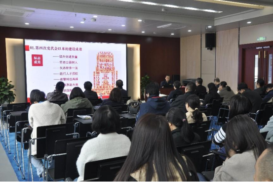 杜超老师紧扣第五次党代会,高屋建瓴,深入浅出,着重从报告起草情况、报告主要内容、报告决议概述、下步工作设想等四个方面为大家解读了第五次党代会以来学校的办学实践与发展战略,使全体与会人员进一步提升了对学校事业发展的紧迫感、使命感和责任感的认识。