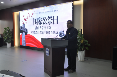 为深切缅怀南京大屠杀死难者及所有为民族解放、国家富强献出生命的先烈,厚植家国情怀,砥砺职业精神,12月12日上午,图书馆工会在四楼报告厅举行了“铭记·传承·担当”国家公祭日馆员主题教育活动。图书馆全体馆员参加了本次活动。